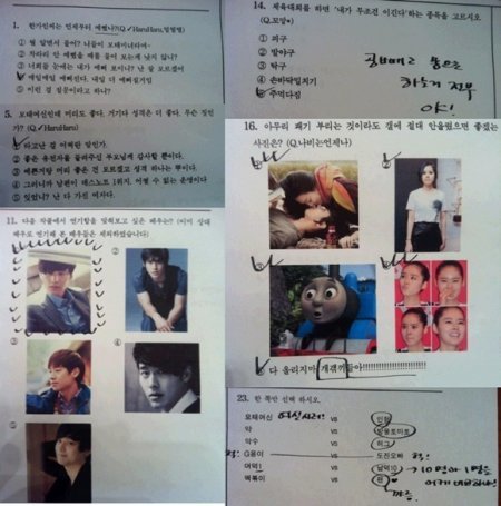 이 사진이 한가인이 직접 팬들이 궁금했던 질문에 답한 문제지가 고스란히 담겨 있었다.