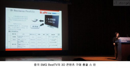 중국 SMG BestTV의 3D 콘텐츠 구매 총괄 스 린도 현재 중국 내 1.49억 명 이상의 유선 TV 시청자들이 존재하며, 3D 콘텐츠가 이들에게 충분한 만족감을 선사할 수 있다면 3D TV 시장의 발전 가능성은 무궁무진하다고 지적했다.