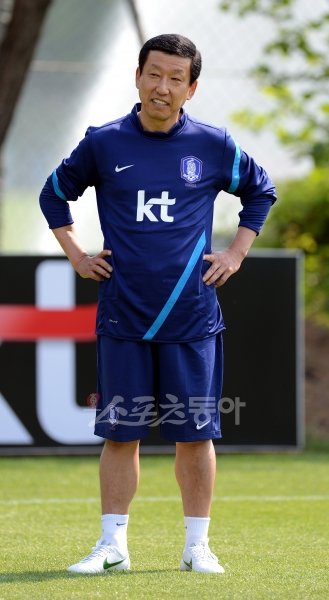 31일 스페인과의 평가전과 6월 8일 카타르와의 최종예선 1차전를 대비한 축구 국가대표팀이 해외파 6명만이 소집된 가운데 21일 파주 트레이닝센타(NFC)에서 오후 훈련을 가졌다. 최강희 감독이 훈련 전 밝게 웃고 있다. 파주|김종원기자 won@donga.com 트위터 @beanjjun