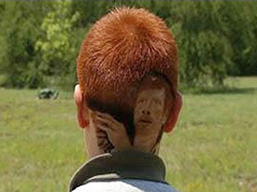 미국 우드랜드힐 중학교에 재학중인 이 학생은 헤어컷을 이용해 자신의 머리 뒤에 농구선수 매트 보너의 얼굴을 그려넣었다.