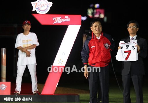 26일 광주 무등경기장 야구장에서 ‘바람의 아들’ 이종범 영구 결번식이 진행되고 있다.