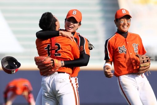 에이스간 맞대결도 흥미진진했다. ‘고교 최대어’로 꼽히는 북일고 윤형배는 3-2로 추격당한 6회 2사 3루서 등판해 3.1이닝을 무실점으로 틀어막았다. 전날 덕수고와의 4강전에서 9이닝 동안 총 147개의 공을 던지며 완투승(8안타 2실점)을 거둔 직후였지만 이날 또 등판해 무안타 무4사구 5탈삼진의 퍼펙트피칭으로 장충고 타자들의 손발을 꽁꽁 묶었다. 대회 최우수선수(MVP)로 선정된 그는 “올라가면 무조건 열심히 던진다는 생각뿐이었다”며 “날 이만큼 키워주신 감독님께 가장 감사드린다”고 고마움을 드러냈다.