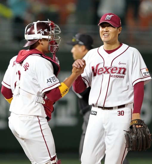 돌아온 통산 112승 투수. 현대왕조의 화려한 중심이었던 김수경(오른쪽)은 12일 시즌 처음으로 1군에 합류했다. 어느덧 30대