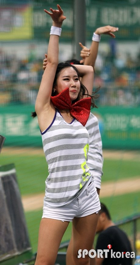 23일 오후 광주 무등구장에서 열린 `2012 팔도 프로야구` KIA 타이거즈와 SK 와이번즈의 경기에서 KIA 치어리더가 응원의 흥을 북돋는 율동을 펼치고 있다.