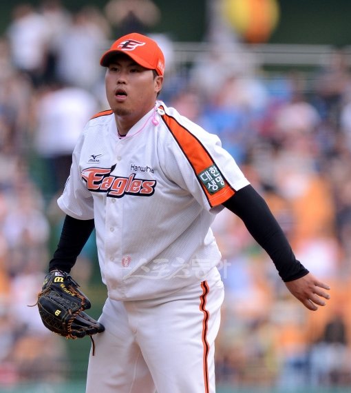 24일 대전 한밭야구장에서 열린 2012 프로야구 8위 한화이글스 대 4위 두산베어스 경기에 선발 등판한 한화 류현진이 3회초 두산 윤석민과 김현수에게 연속타자 홈런을 허용한 뒤 아쉬운 표정을 짓고 있다.