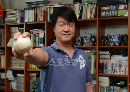 야구인들에게도 최훈 작가의 프로야구 카툰은 인기 만점이었다. 냉철한 시각으로 의표를 찌르는 재미를 지닌 그의 카툰에 많은 지지를 보냈다. 최 작가가 직접 직구 그립을 쥐어 보이며 스포츠동아에 새로 연재할 카툰 ‘돌직구’를 연상시키고 있다. 부천|박화용 기자 inphoto@donga.com 트위터 @hong927