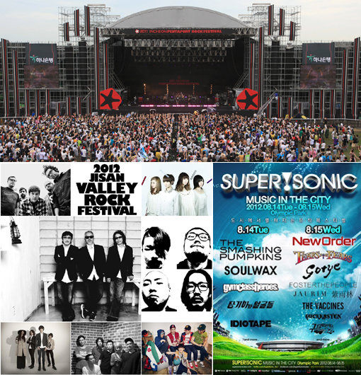 여름을 맞아 다양한 콘셉트의 록 페스티벌이 관객을 기다리고 있다. 사진은 올해로 7회를 맞은 펜타포트와 휴양지에서 개최되는 지산밸리, 도심에서 펼쳐지는 뮤직 페스티벌을 표방한 슈퍼!소닉(맨 위부터 시계 반대 방향으로). 스포츠동아DB