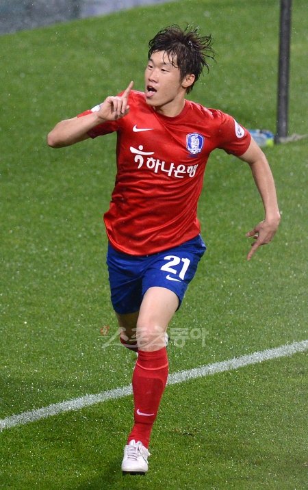 전반전 TEAM 2002 박지성이 팀의 두번째 골을 성공시킨 후 환호하고 있다. 상암 | 김종원기자 won@donga.com 트위터 @beanjjun