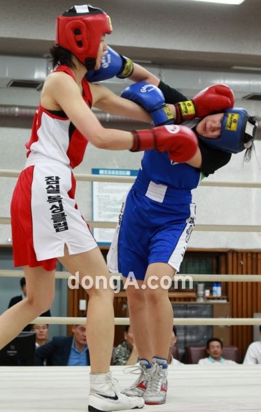 탤런트 이시영이 6일 오후 서울시 송파구 한국체대에서 열린 ‘서울시 복싱대표선발전’에서 상대 선수에게 펀치를 날리고 있다.
