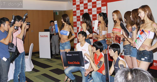 소위 ‘잘나가는’ 회사의 기자 간담회는 뭔가 분위기가 사뭇 다르다. 세계 플래시메모리 제품 시장에서 부동의 1위를 차지하고 있는 샌디스크의 기자 간담회답게 이날 행사에선 총 9명에 달하는 전문 모델들이 등장해 눈길을 끌었다. 마치 패션쇼를 연상시키는 분위기 속에서 사진 기자들은 촬영에 열을 올렸고, 모델들 역시 이에 호응해 적극적으로 다양한 포즈를 취했다.