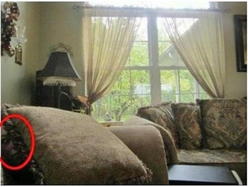 ‘이해하면 무서운 사진’을 얼핏 보면 평범한 가정집 모습이지만 자세히 보면 쿠션 밑에 사람의 얼굴이 보인다.