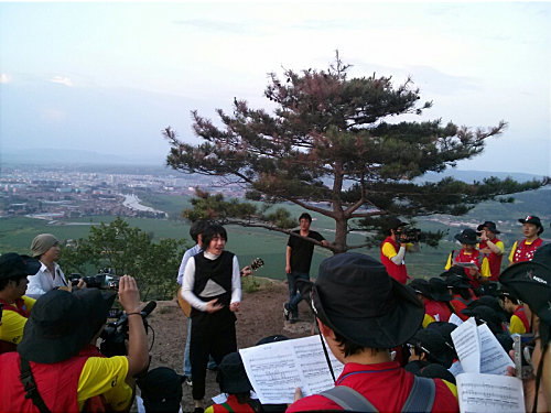김장훈은 원정대와 함께 일송정에서 가곡 ‘선구자’를 비롯해 ‘행복의 나라로’ ‘사랑으로’ 3곡을 노래한 후 호텔로 돌아왔다. 저녁식사 후 호텔에 있는 행사장에서 김장훈의 응원공연이 1시간30분 동안 이루어졌다.