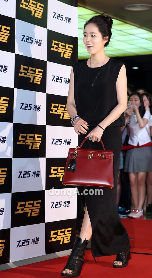 배우 한가인이 12일 오후 서울 강남구 메가박스 코엑스에서 열린 영화 ‘도둑들’ VIP시사회에 앞서 포토타임을 갖기 위해 무대에 서고 있다.
