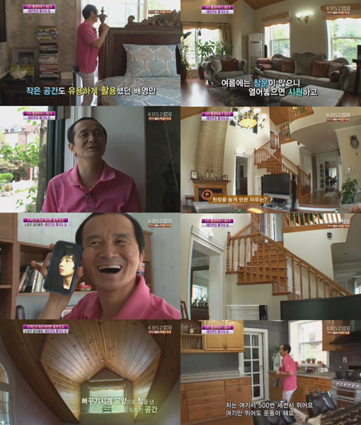 배영만의 집은 높은 천장과 계단이 눈길을 끌었다. 배영만은 "내 집이다. 내가 왔다는 느낌을 즐기려고 천장을 높게 지었다"고 설명했다.
