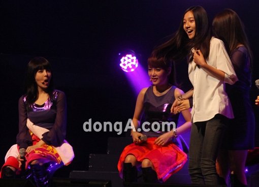 걸그룹 티아라 새로운 멤버 다니가 14일 오후 서울 경희대 평화의전당에서 열린 티아라 팬클럽 QUEENS(퀸즈) 창단식에서 인사를 하고 있다.