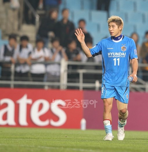 울산현대 이근호(27·사진)가 15일 열린 K리그 21라운드 강원과의 원정경기에서 짜릿한 결승골을 성공시키며 팀의 2-1 승리를 이끌었다. 울산은 귀중한 승점3을 챙기며 11승 5무 5패(승점38)로 4위를 유지했다. 3위 수원에 승점1 차이로 바짝 다가섰다.