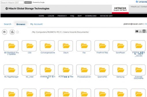 클라우드 백업의 경우 백업된 파일은 ‘VIEW MY FILE’ 항목을 클릭한 다음 인터넷 익스플로러 등의 웹브라우저로 서버에 접속해 확인할 수 있다. 클라우드 백업 가입 계정으로 로그인하면 웹브라우저로 백업 폴더와 파일을 볼 수 있으며, 특정 파일을 더블클릭하면 PC로 내려받을 수 있다(파일 올리기는 불가능). 다만 본 리뷰어의 경우 웹브라우저 내 한글 파일/폴더 이름이 간헐적이지만 제대로 출력되지 않기도 했다(윈도 7, 인터넷 익스플로러9 기준). 참고로 ‘BUY MORE’ 버튼을 누르면 프리미엄 계정을 등록할 수 있다.