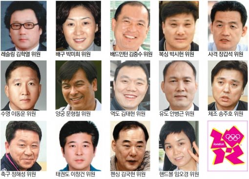다음은 런던올림픽 기간 지면을 통해 독자들을 만날 종목별 해설위원.(종목 가나다순). ▲레슬링=김학열(대한레슬링협회 사무국장·대한체육회 경기단체연합회장) ▲배구=박미희(KBSN스포츠 해설위원) ▲배드민턴=김중수(2008베이징올림픽 총감독) ▲복싱=박시헌(1988서울올림픽 금메달) ▲사격=장갑석(한체대 교수·대한사격연맹 강화위원장) ▲수영=이동운(대한수영연맹 총무이사) ▲양궁=문형철(2008베이징올림픽 여자 감독) ▲역도=김태현(아시안게임 남자 최중량급 3연패) ▲유도=안병근(용인대 교수·1984LA올림픽 금메달·베이징올림픽 남자 감독) ▲체조=송주호(체육과학연구원 체조 담당 박사) ▲축구=정해성(프로축구 전남 감독) ▲태권도=이창건(서울시청 감독) ▲펜싱=김국현(대한펜싱협회 부회장) ▲핸드볼=임오경(주니어여자대표팀 감독·1992바르셀로나올림픽 금메달)