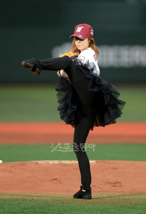 18일 오후 서울 목동야구장에서 '2012 팔도 프로야구' 넥센 히어로즈와 롯데 자이언츠의 경기가 열렸다. 넥센 시구자로 나선 발레리나 김리회가 시구를 던지고 있다.