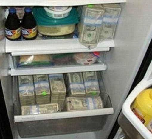 공개된 사진에는 음식물이 들어있어야 할 냉장고 가득 돈뭉치가 들어있다. 마치 개인 금고를 보는 듯해 시선을 모은 것.