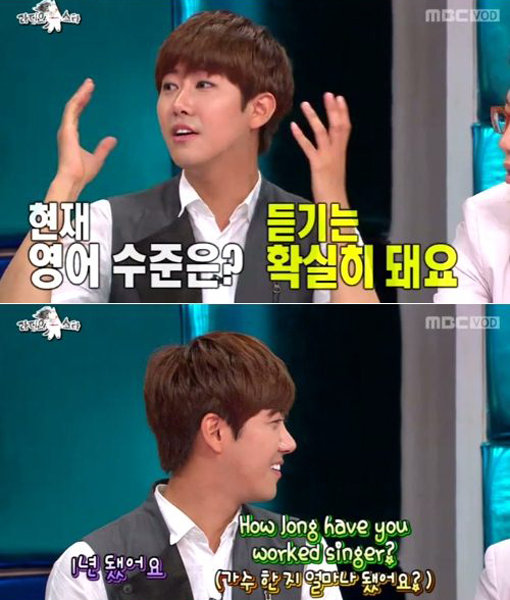 영어 듣기는 완벽하다는 광희의 말에 테스트에 들어갔다. 김영철이 영어로 질문하면 광희가 한국말로 대답하는 것. 광희는 막힘 없이 대화를 이어갔다.