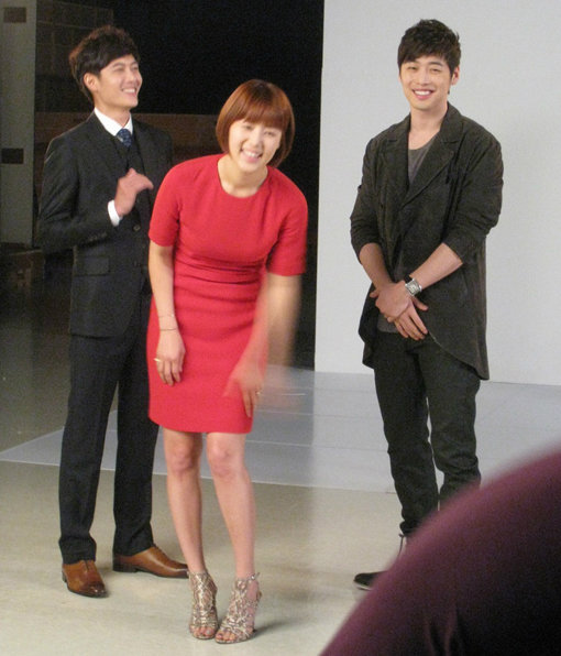 사진에는 빨간색 원피스를 입은 한지혜가 남자 주인공 김재원, 재희와 함께 서서 환하게 미소를 짓고 있다. 하지만 어깨에 살이 붙은 듯 후덕한 모습이 시선을 모은 것.