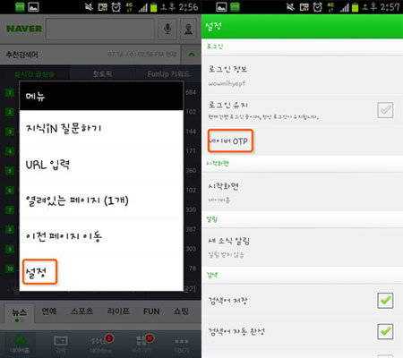 세 번째 단계에 들어가기 이전에 내려받은 앱을 확인하자. 네이버 앱 하단에서 ‘더보기’ 버튼을 누르면 ‘설정’ 탭이 있다. ‘설정’ 탭에서 ‘네이버 OTP’를 누른다.