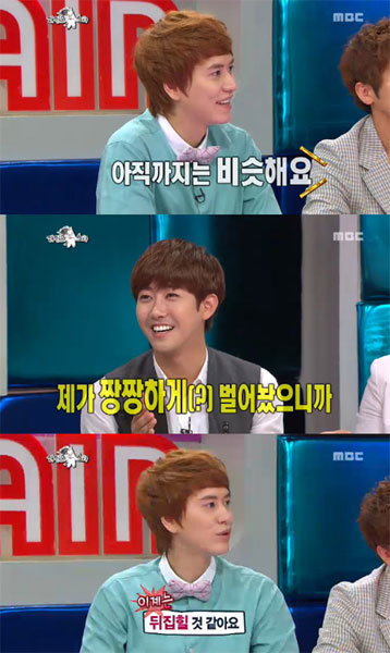 광희는 임시완과의 수입 차이를 묻는 질문에 “아직까지는 비슷하지만 내가 짱짱하게 벌어놨으니 이제는 뒤집힐 것 같다”고 털어놓으며 “시완이는 한방에 화장품 CF도 찍었다”고 질투를 보냈다.