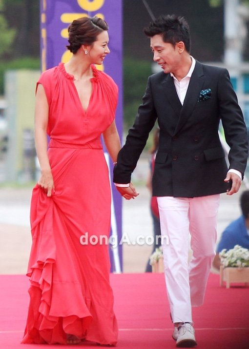 배우 정애연(왼쪽)과 김진근 부부가 19일 오후 부천시 원미구 부천실내체육관에서 열린 ‘제16회 부천국제판타스틱영화제(PiFan)’에 앞서 레드카펫을 밟고 있다.
