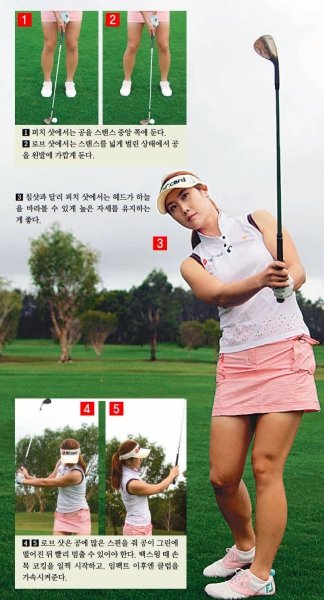 김하늘은 “체중을 오른발 쪽에 두고 스윙하는 게 공을 띄우기 더 쉽다고 말하기도 하지만 그렇게 되면 공에 스핀이 많이 걸리지 않고 높게 뜨기만 하는 샷이 나와 핀을 직접 공략하기 어려워진다. 또 헤드가 조금만 빨리 들어 올려져도 토핑과 같은 미스샷이 나올 수 있어 주의해야 한다”고 조언했다.