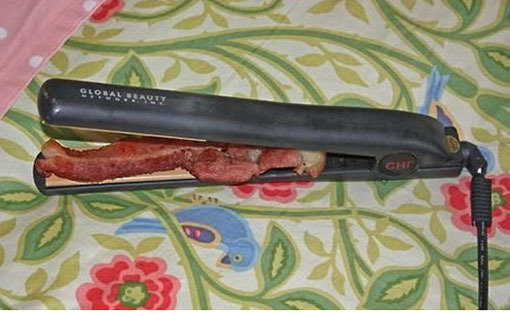 공개된 사진에는 고대기가 놓여 있다. 자세히 살펴보면 고대기 안에 베이컨이 있는 모습을 확인할 수 있다. 베이컨을 굽는데 오븐이나 프라이팬을 쓰지 않고 고대기를 사용한 것이다. 베이컨이 잘 익은 모습을 볼 수 있다. 이 모습을 보고 누나에게 혼나는 상황이라는 제목이 붙은 것이다.