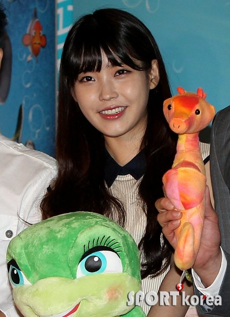 가수 아이유가 26일 오후 서울 용산 CGV에서 열린 영화 ‘새미의 어드벤쳐2’ VIP 시사회에 참석해 미소를 짓고 있다.