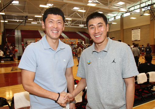 2012 한국농구연맹(KBL) 트라이아웃이 열린 미국 라스베이거스 데저트 오아시스 고등학교에서 26일(한국시간) 만난 삼성 이상민(40) 코치와 KCC 추승균(38) 코치 사이에선 말 한마디에도 서로에 대한 존경과 우정이 묻어났다. 나란히 이번 시즌부터 코치로 데뷔해 새로운 길에 들어서서인지, 두 사람 모두 “코치 생활이 쉽지 않다”면서도 “조금씩 배워나가는 중”이라고 밝혔다. 2년 선배인 이 코치는 “현역 시절부터 (추)승균이는 누구보다 성실했고, 열심히 했다. 나랑 정반대였다”고 후배를 칭찬했고, 추 코치는 “현역 때부터 상민이 형에게 많이 배웠다. 좋은 지도자가 되실 것”이라고 선배를 치켜세웠다.