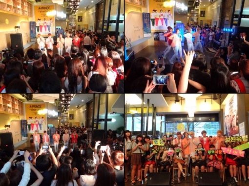 그룹 엠블랙의 지오가 작사, 작곡한 노래로 데뷔한 에이프린스는 26일 멤버들의 트위터를 통해 번개 쇼케이스 홍보를 시작해 이날 오후 7시 서울 강남의 한 카페에서 쇼케이스를 갖고 약 40분간 팬들과의 첫 만남을 가졌다.