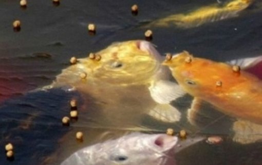 이 사진은 겨울에 촬영된 것으로 추정된다. 사진 속 물고기는 먹이를 먹기 위해 수면으로 올라와 입을 뻐금거리고 있다.