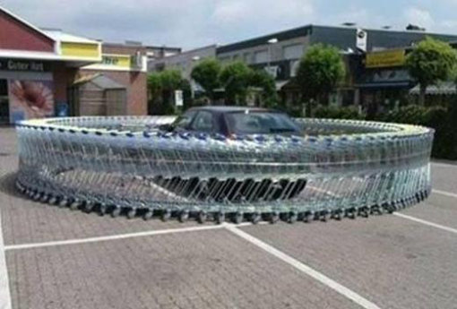 100원 밀어서 잠금 해제 자동차? 알고보니 카트에 포박됐어