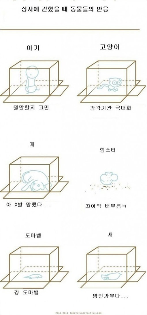 최근 한 온라인 커뮤니티에는 ‘상자에 갇혔을 때’이라는 게시물이 누리꾼들의 눈길을 끌고 있다.