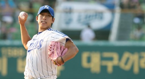 26일 대구 SK전에 선발 등판했던 삼성 윤성환(31·사진)은 분홍 글러브를 착용해 눈길을 끌었다. 그는 5월부터 훈련 때 분홍 글러브를 썼지만, 경기에선 다른 글러브를 착용했다. 훈련용 글러브 용도는 아니었다. 윤성환은 27일 “글러브를 자주 바꾸는 편이다. (분홍색 글러브를) 여름에 착용하려면 길을 들여야 해서 연습 때 썼다”고 설명했다.