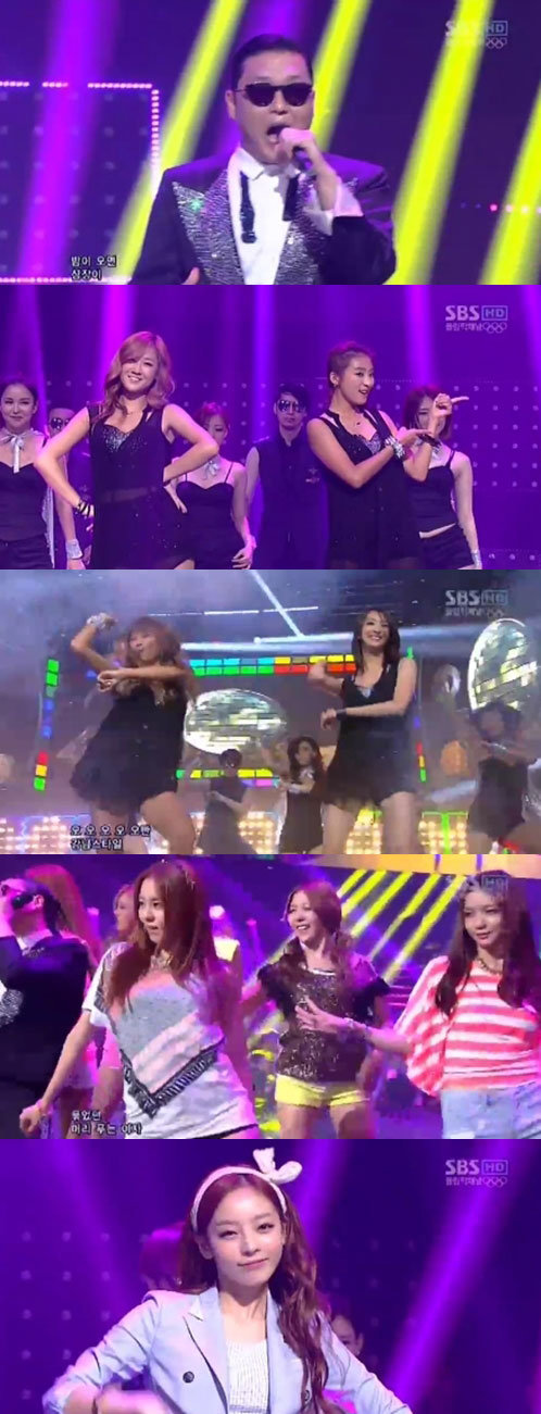 이에 방송을 본 누리꾼들은 ‘강남스타일 오빠의 힘인가?’, ‘무대 정말 유쾌해요’, ‘싸이, 걸그룹 짱!’ 등의 반응을 보였다.