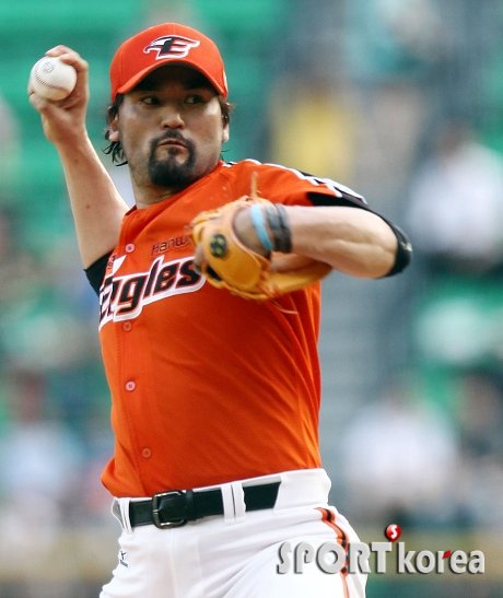 1일 저녁 서울 잠실야구장에서 열린 `2012 팔도 프로야구` LG트윈스와 한화이글스의 경기에서 한화 선발 투수 박찬호가 1회말 역투하고 있다.