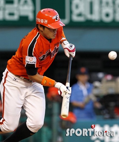 2일 저녁 서울 잠실야구장에서 열린 `2012 팔도 프로야구` LG트윈스와 한화이글스의 경기 3회초 1사에서 한화 오선진이 기습번트로 뛰어 나가고 있다.