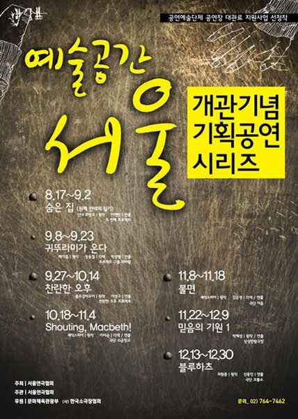 서울연극협회는 ‘다르다, 충돌한다, 지속적이다’라는 슬로건을 내세운 예술연극 전용극장 ‘예술공간 서울’을 개관한다고 밝혔다.