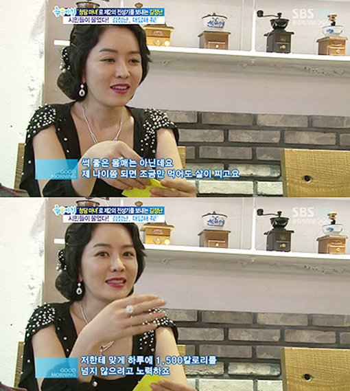 이날 김정난은 “몸매 비법을 알려 달라”는 질문에 “썩 좋은 몸매는 아니다”라고 말하며 “내 나이쯤 되면 조금만 먹어도 살이 찐다. 많이 안 먹어도 살이 잘 안 빠진다. 그래서 칼로리 계산을 늘 하고 있다”고 말했다.