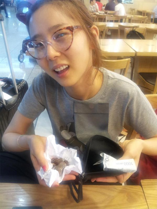 김나영은 3일 자신의 트위터에 “여행. 그것은 돈과의 싸움. 서울에 도착한 나의 지갑안에는 천원짜리 한 장과 미국 동전만 남아있다”라는 글과 사진을 올렸다.