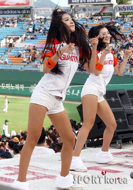 `2012 팔도 프로야구` 롯데 자이언츠와 삼성 라이온즈의 경기가 5일 오후 부산 사직야구장에서 열렸다. 이닝교체 타임을 이용해 롯데 치어리더들이 멋진 공연을 펼치고 있다.