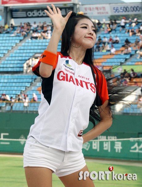 `2012 팔도 프로야구` 롯데 자이언츠와 삼성 라이온즈의 경기가 5일 오후 부산 사직야구장에서 열렸다. 이닝교체 타임을 이용해 롯데 치어리더들이 멋진 공연을 펼치고 있다.