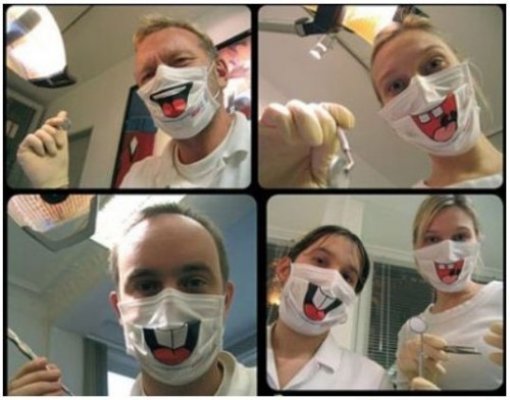 사진 속 치과는 일반 치과와 다르게 의사들이 재밌는 캐릭터가 새겨진 마스크를 착용하고 있다.