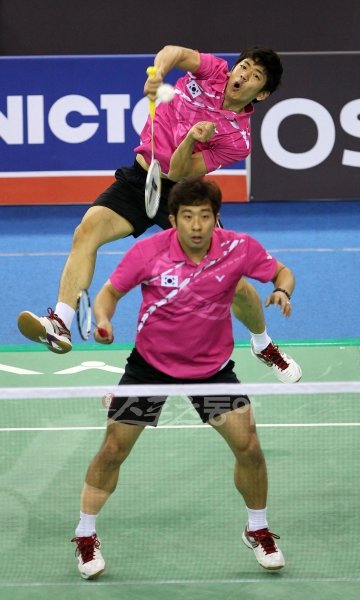이용대(24)가 높이 뛰어올라 스매싱을 날렸다. 정재성(30·이상 삼성전기)은 네트 바로 앞에서 다음 수비를 준비했다. 네트 위를 빠르게 통과한 셔틀콕은 그대로 상대 코트에 떨어졌다. 이용대는 무릎을 꿇었고, 정재성은 그대로 누웠다. 그리고 7년간 함께 땀을 쏟았던 파트너는 서로를 뜨겁게 안았다.