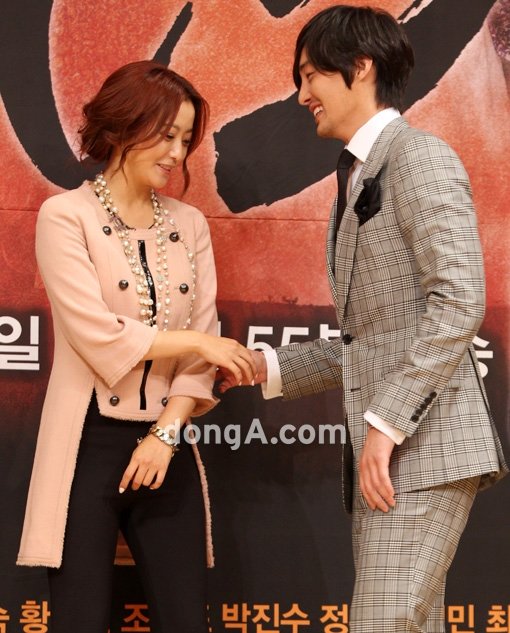 배우 김희선(왼쪽)과 이필립이 9일 오후 서울 양천구 SBS목동방송센터에서 열린 드라마 ‘신의’ 제작발표회에서 포토타임을 갖고 있다.
