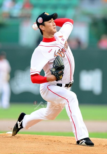 SK 김광현(24·사진)이 올 시즌 국가대표 좌완 에이스다운 모습을 보이지 못하고 있다. 후반기 들어 등판한 3경기에서 총 16이닝을 던져 무려 17안타 3홈런 10볼넷 13실점하며 승 없이 2패만을 떠안았다. 가장 최근 등판이었던 8일 문학 삼성전에선 5.2이닝 8안타 2홈런 6실점으로 무너졌다. 채병용이 돌아오면서 송은범과 데이브 부시, 윤희상까지 5선발 퍼즐이 맞춰졌지만, 김광현은 명실상부한 SK의 에이스다. 에이스가 무너지면 팀은 1패 이상의 타격을 입는다.